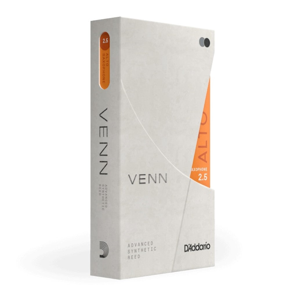 D’Addario VENN: an advanced synthetic reed constructed of polymer fibers, resin, and natural cane elements. Designed to give players the benefits of synthetic reeds without compromising on the sound and playability of cane reeds.