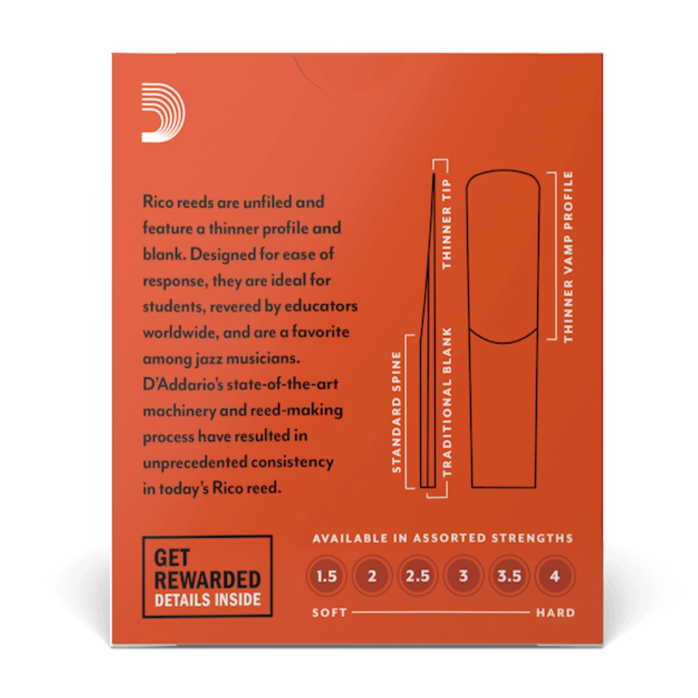 Rico by D’Addario Alto Saxophone reeds are crafted with beginners and educators in mind, thanks to their traditional blank and profile for ease of response, plus unfiled cut for added support. These reeds are available for a full range of clarinets and saxophones to best suit your playing needs.
