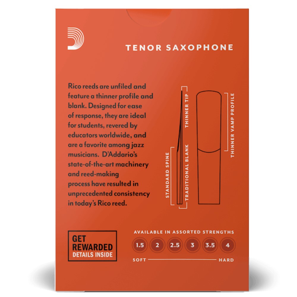 Rico by D’Addario Tenor Saxophone reeds are crafted with beginners and educators in mind, thanks to their traditional blank and profile for ease of response, plus unfiled cut for added support. These reeds are available for a full range of clarinets and saxophones to best suit your playing needs.