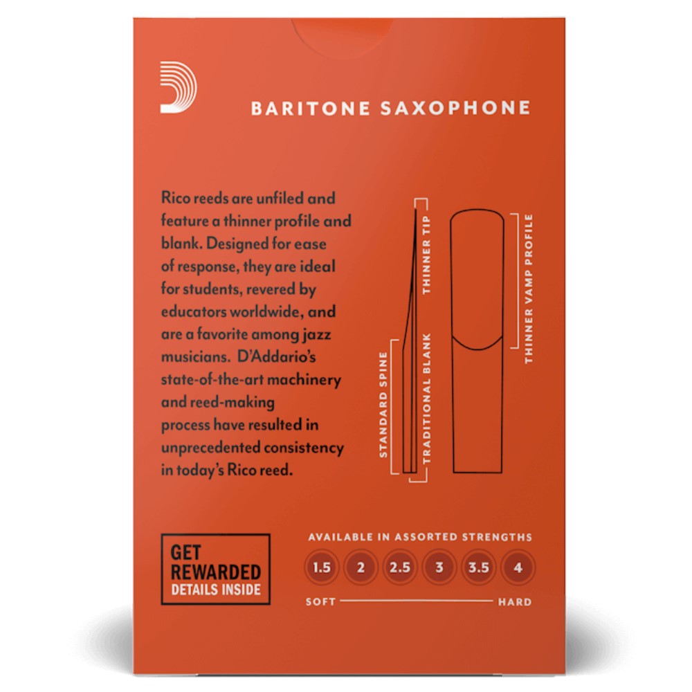 Rico by D’Addario RLA1020 Baritone Saxophone Reeds, Strength 2.0, 10-Pack