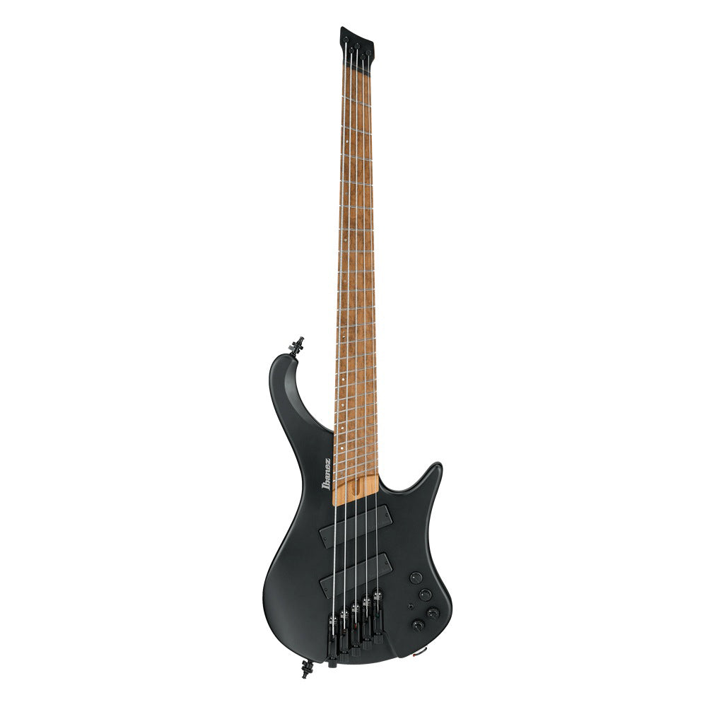 The new EHB design features a chambered body double cutaway body shape with a prominent upper horn and a deep lower scoop. The chambered body has an ergonomic design with a slanted back to enable the player to maintain a similar playing position whether seated or standing. The EHB1005SMS features a multi-scale headless design with a chambered American basswood body bolted to a graphite reinforced roasted maple and walnut neck with a roasted birdseye maple fingerboard with 24 stainless steel fanned frets, offset abalone dot position markers and luminescent side dots. Components include individual Monorail V HS bridges with adjustable string spacing, a pair of Bartolini BH2 passive pickups, a detachable finger ramp, a Vari-mid 3-band EQ with EQ bypass switch, a locking Neutrik output jack and Schaller S-Lock strap pins.