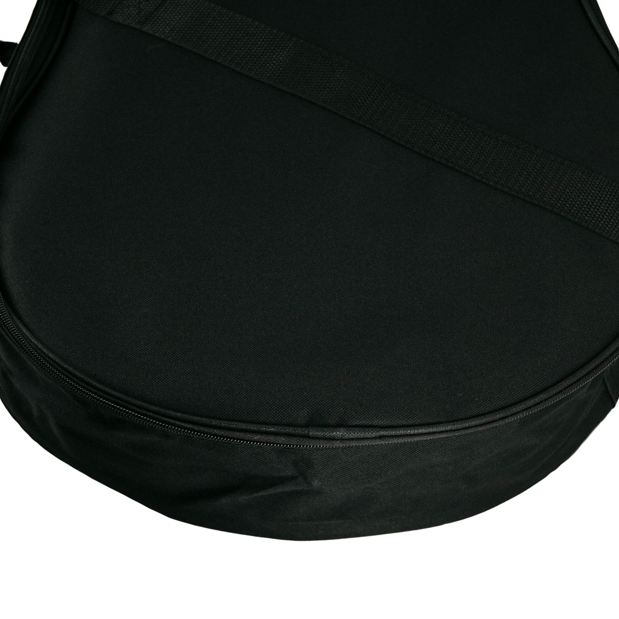 This bag has a water-resistant, 100% polyester exterior. It has a front zip pocket that stores small to medium-sized accessories such as tuners, picks, capos and magazines.