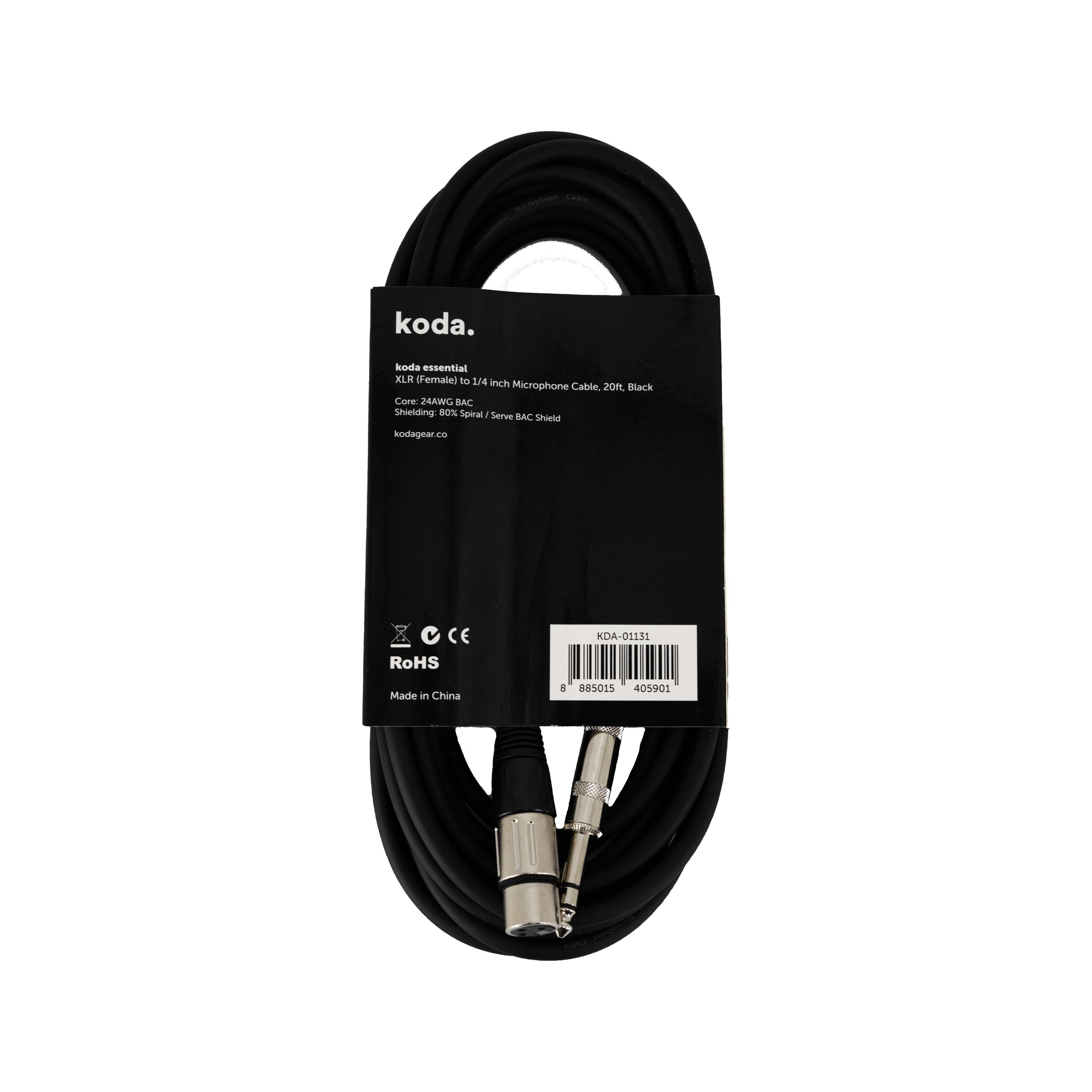 koda essential XLR (Female) to 1/4inch Microphone Cable, 20ft, Black