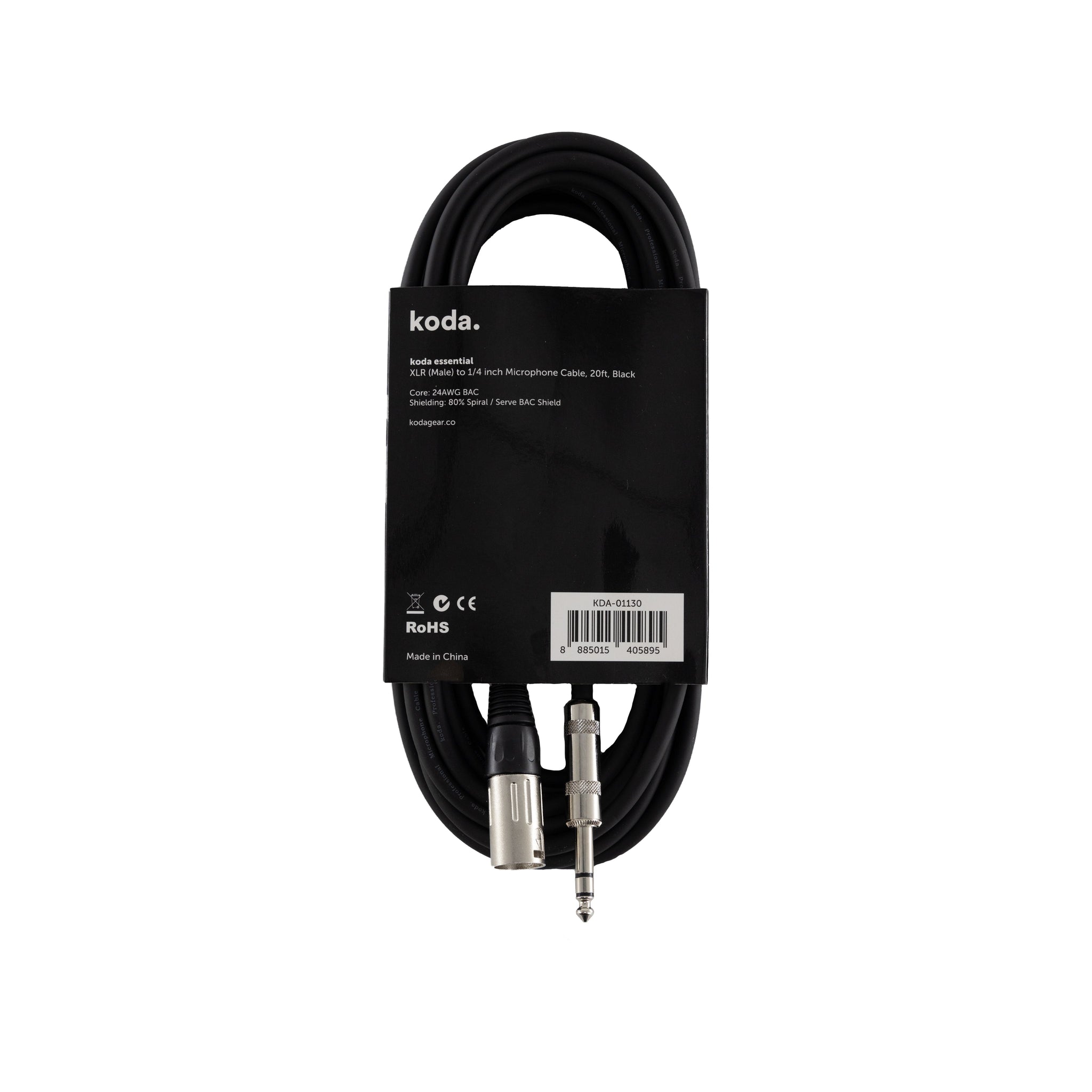 The koda essential XLR (Male) to 1/4inch Microphone Cable is designed for reliable use and provides optimum signal transfer. This cable is shielded for low-noise operation and made from durable materials.