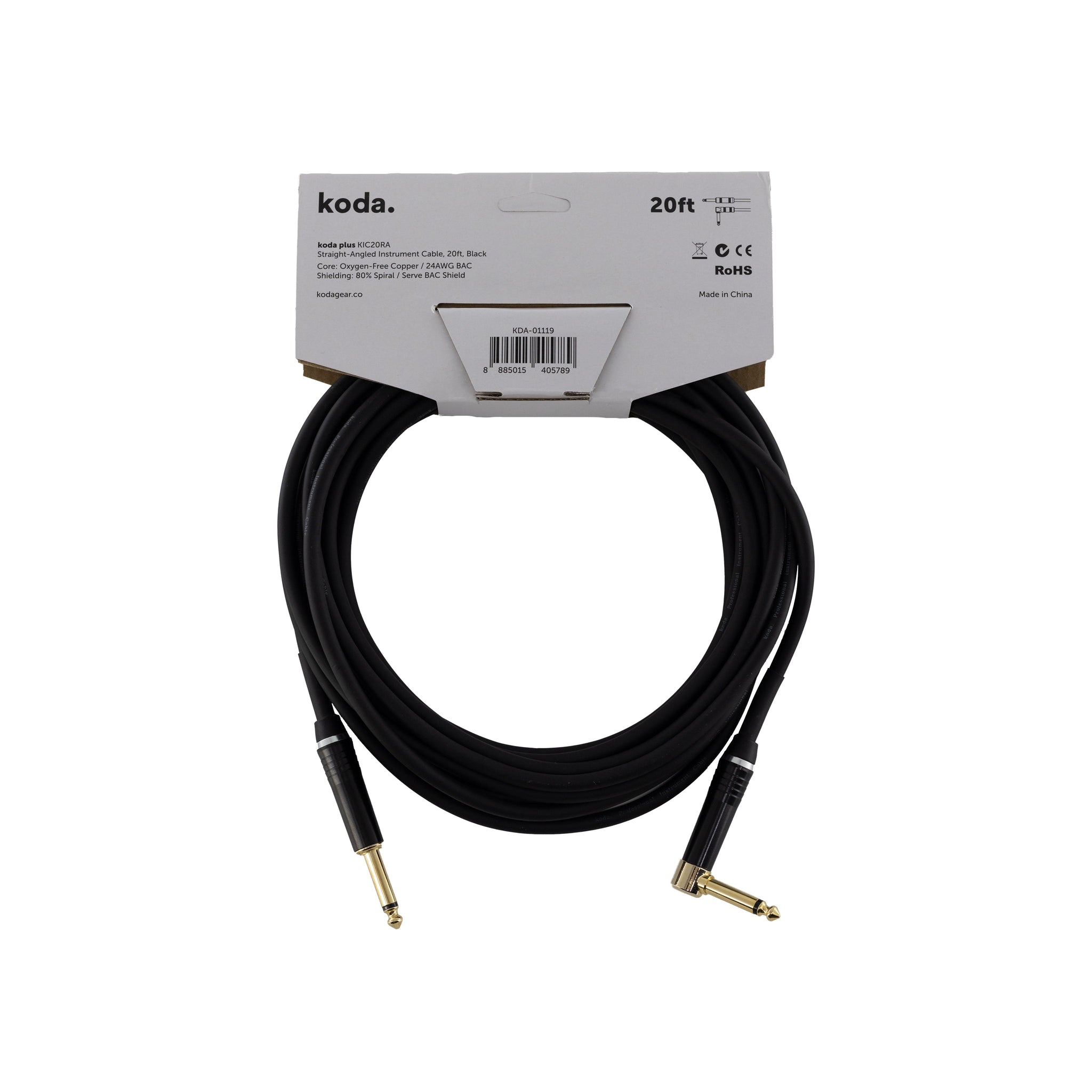 koda plus KIC20RA Straight-Angled Instrument Cable, 20ft, Black