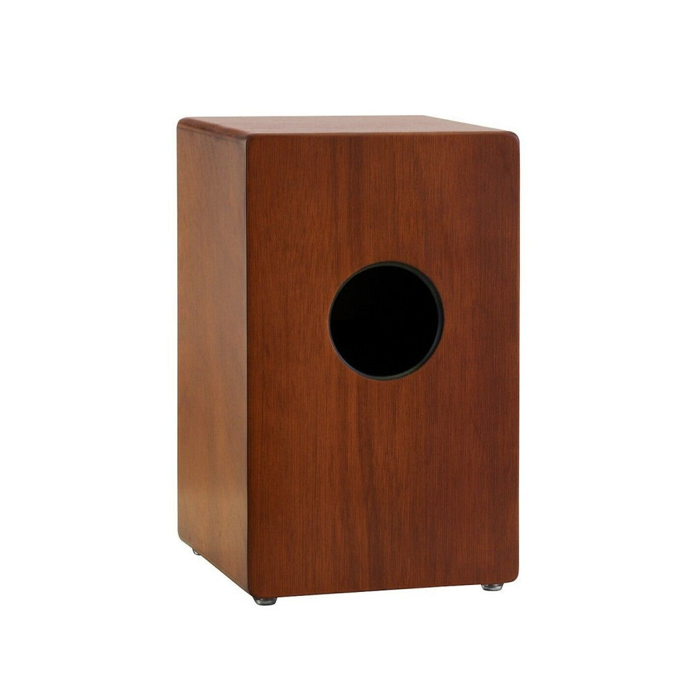The Cabana Cajon features a patent pending internal bass port that boosts the bass beyond belief. The internal guitar wires produce a crisp snare attack that can be varied with the tuning screw on the bottom of the Cajon. The body and face are constructed with Philippine mahogany for its rich, warm tonal characteristics. The Cabana Cajon features a grain through mahogany finish on the body and a black faceplate.