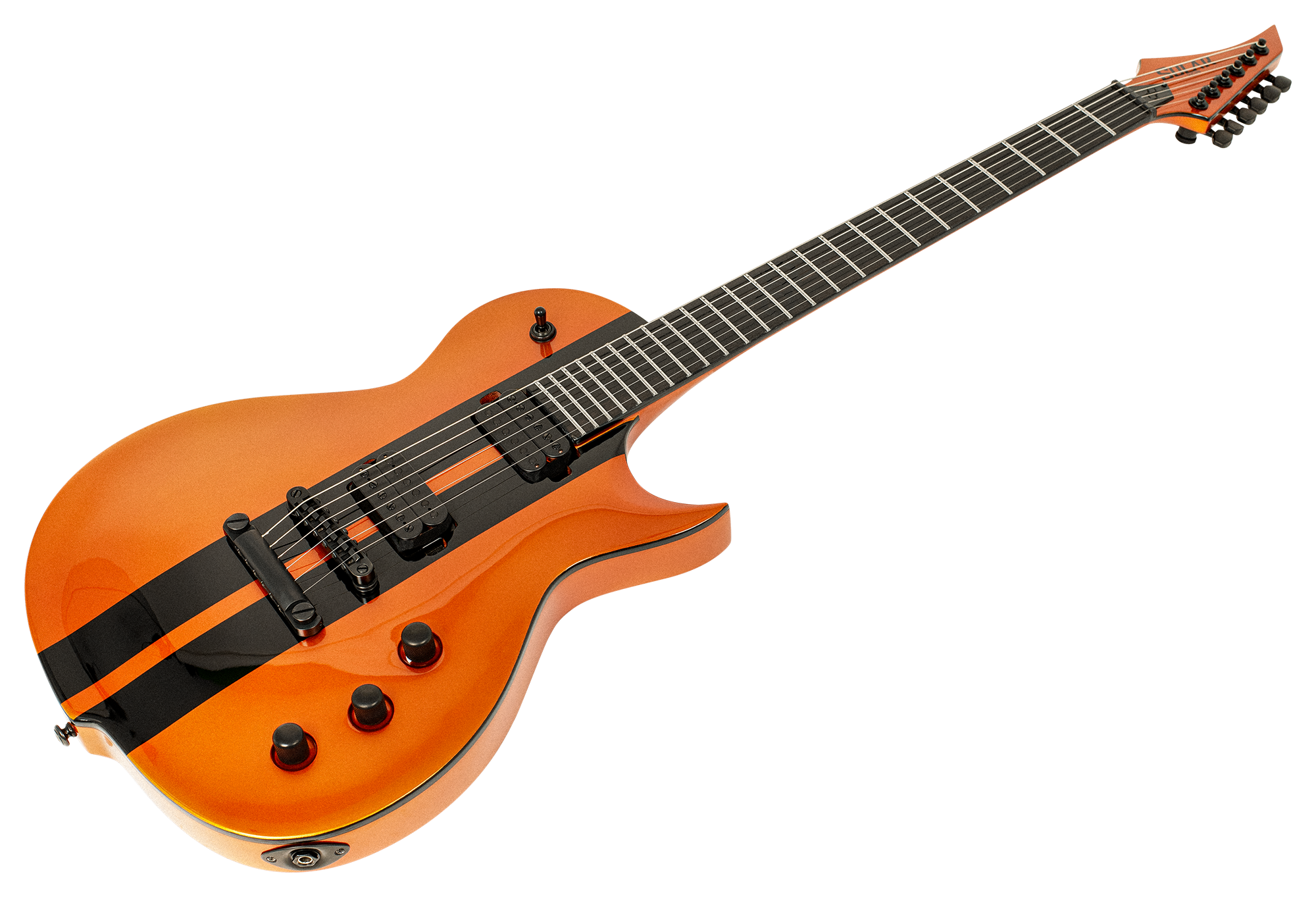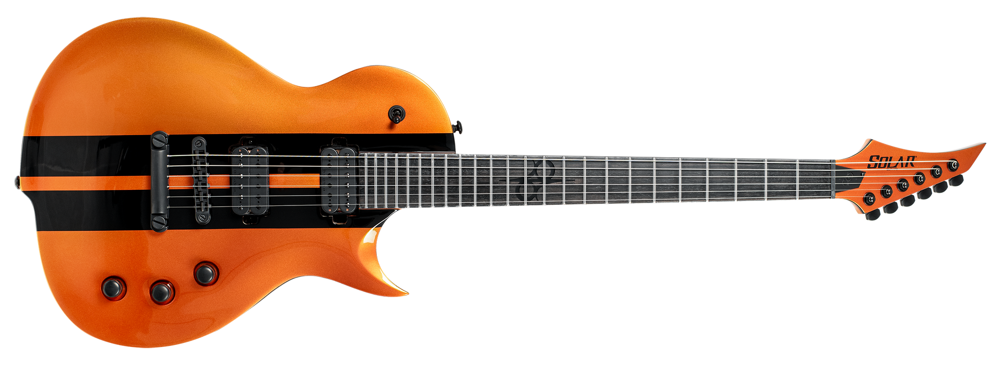 Loaded with Solar 18:1 locking tuners, PPS nut and full access neck, this guitar is available in orange metallic gloss with black racing stripes finish.