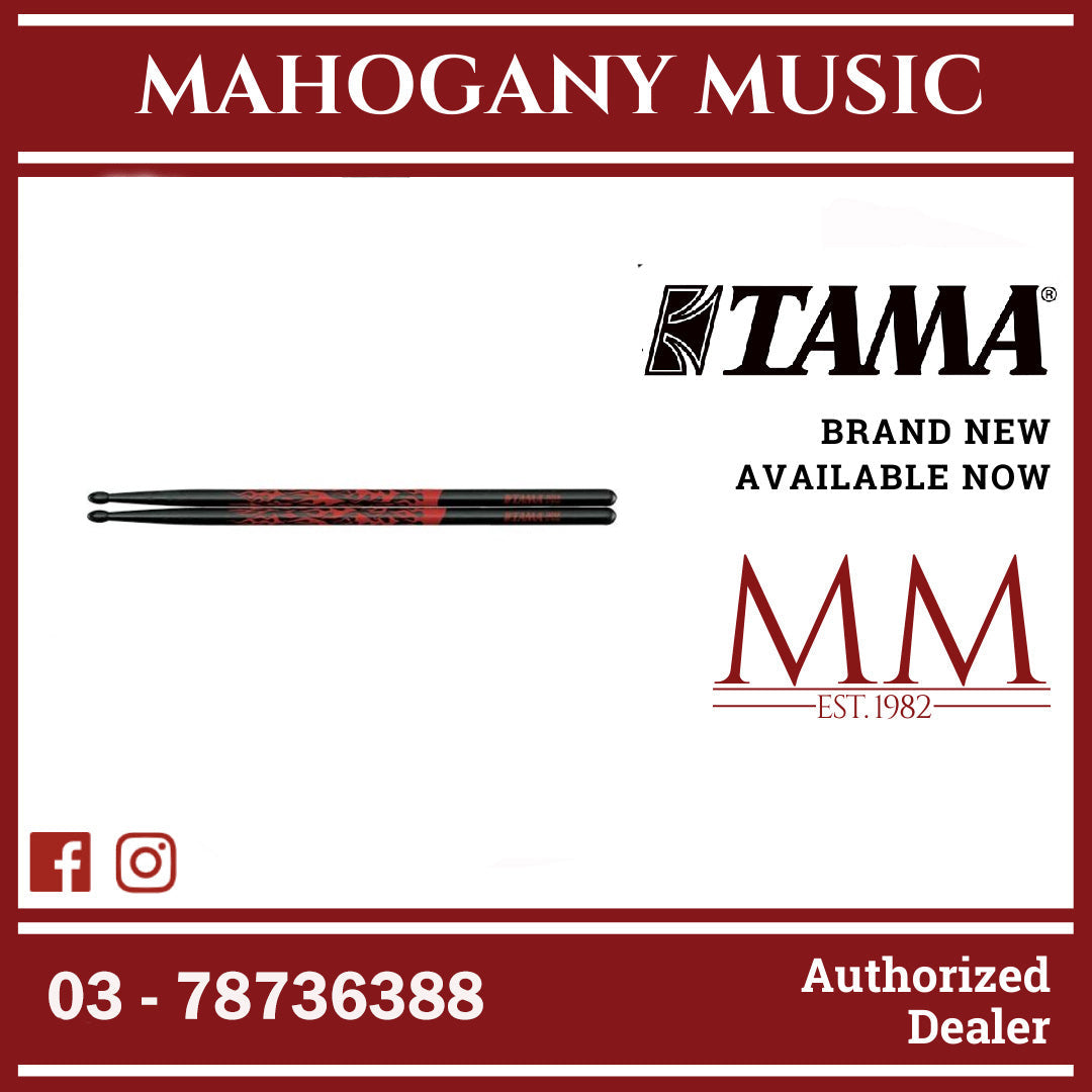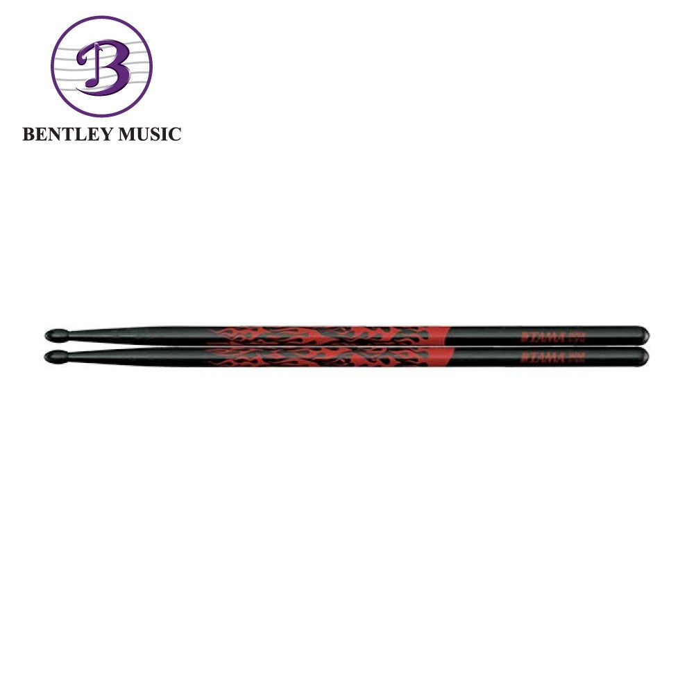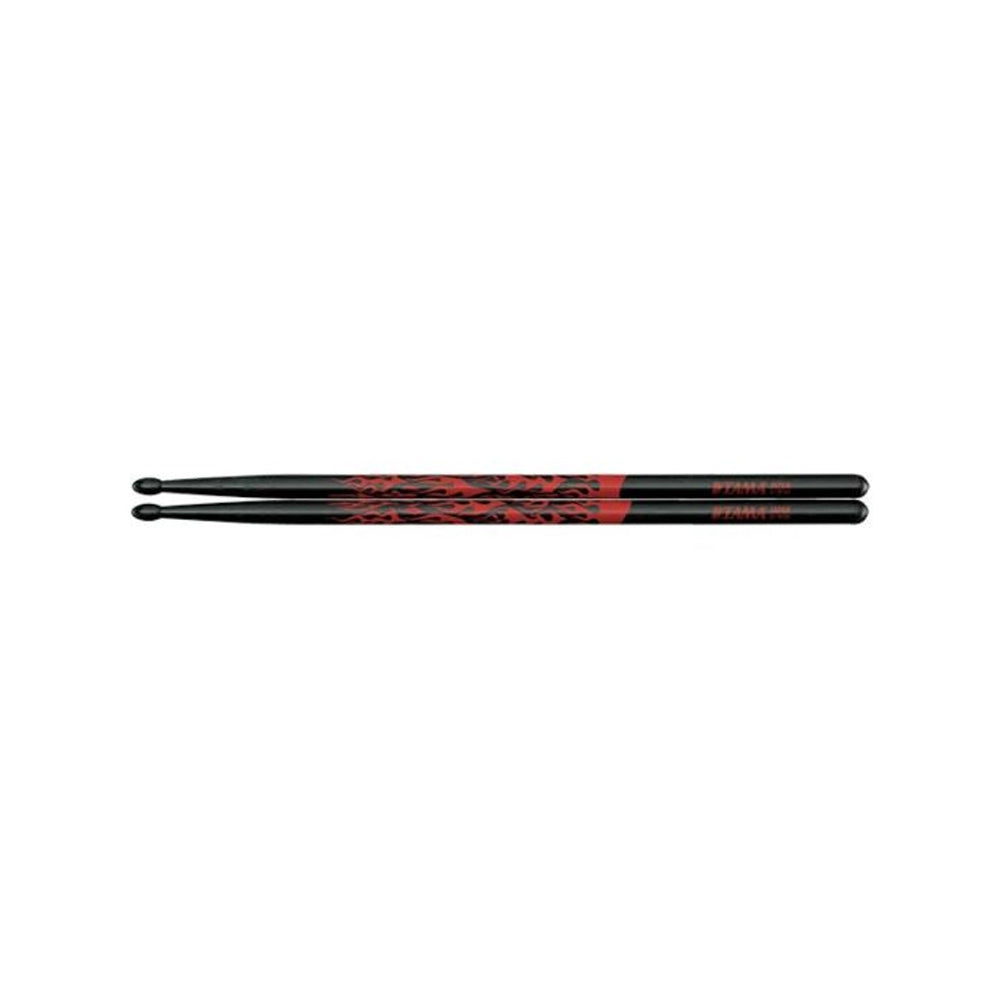 Tama 5A-F-BR Rhythmic Fire Series 5A Japanese Oak Drumsticks, Black Red Pattern