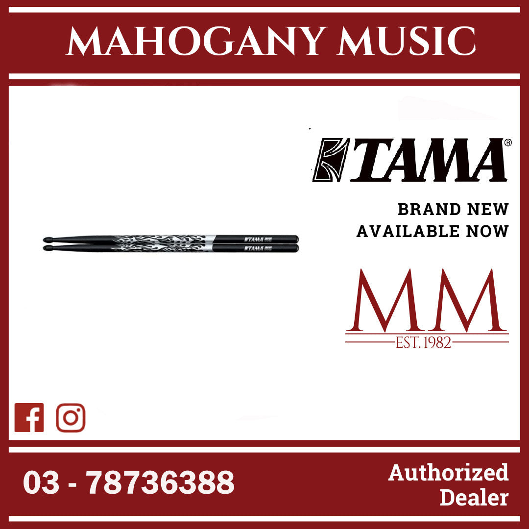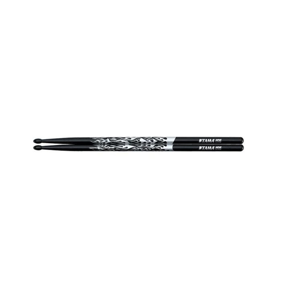 Tama 5A-F-BS Rhythmic Fire Series 5A Japanese Oak Drumsticks, Black Silver Pattern
