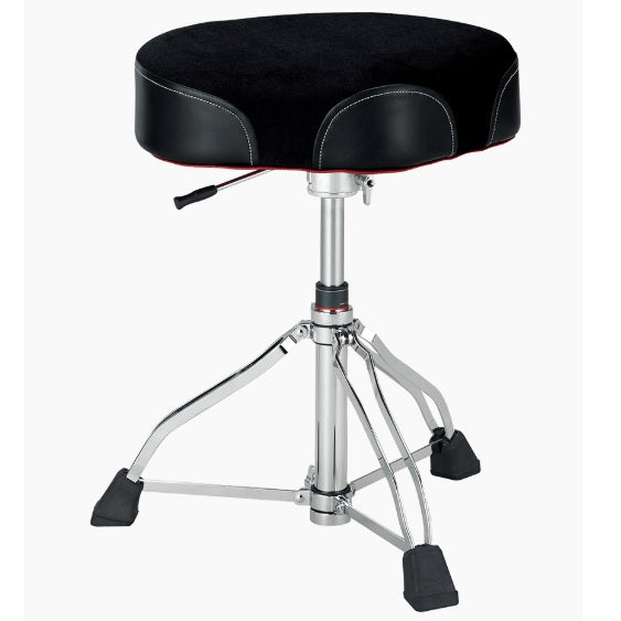 Get a premium drum throne for a great price with TAMA’s Ergo-Rider Hydraulix. Part of TAMA’s 1st Chair series, the Ergo-Rider Hydraulix features the comfortable ergonomics of a hybrid half-round/half-saddle seat. The seat top itself is made from a special non-slip fabric that wicks away sweat, and a 2-piece locking hinge collar system provides an amazingly secure connection between your seat and the base of the throne. In addition to its low center of gravity (courtesy of TAMA’s Super Stabilizer design) and oversized rubber feet, this Round Rider includes a Hydraulix mechanism that makes height adjustment easy.