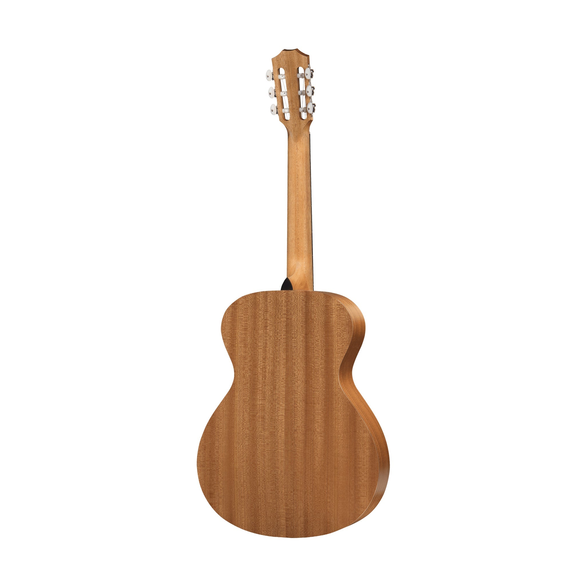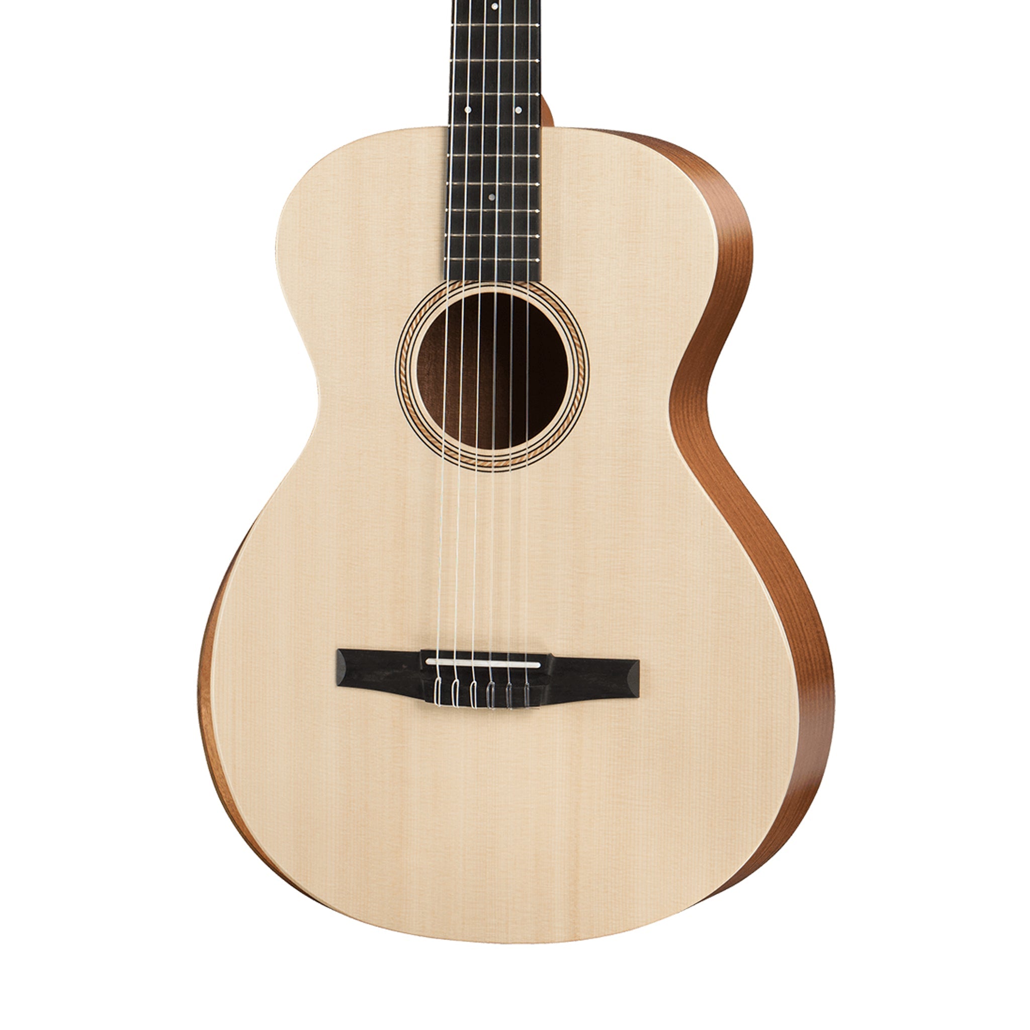 This nylon-string Grand Concert from our Academy Series may be the best nylon-string guitar you’ll find for the money. The underlying design goal of the series is to make the acoustic guitar accessible to more players by bringing Taylor’s legendary playability and tone into an affordable price range. One of the benefits of a nylon-string guitar is that the light string tension is easy on the fingertips. Another inviting feature is a built-in armrest to enhance playing comfort. Tonally, the wood pairing of layered sapele back and sides with a solid Lutz spruce top, together with the body’s internal bracing, project a warm, mellow nylon voice with a crisp percussive appeal that suits a variety of musical styles and responds well to both fingerpicking and flat-picking. Whether you’re a steel-string player looking to add an affordable nylon string to your acoustic toolbox or crave a great-sounding acoustic guitar that’s easy on the hands and the wallet, the Academy 12-N is an option well worth exploring.