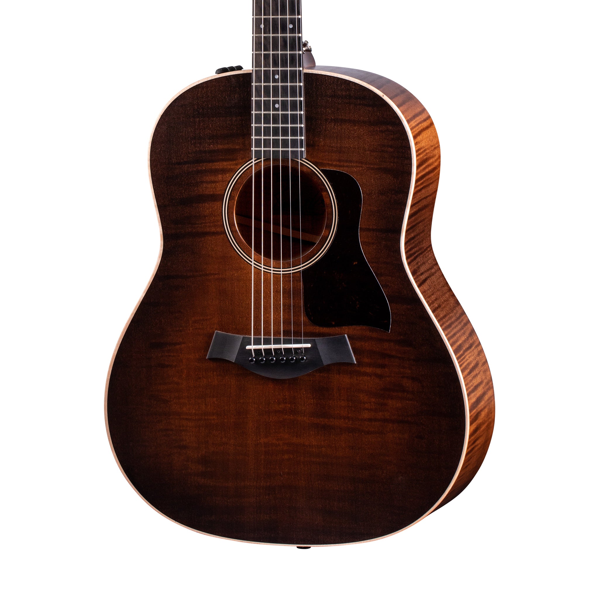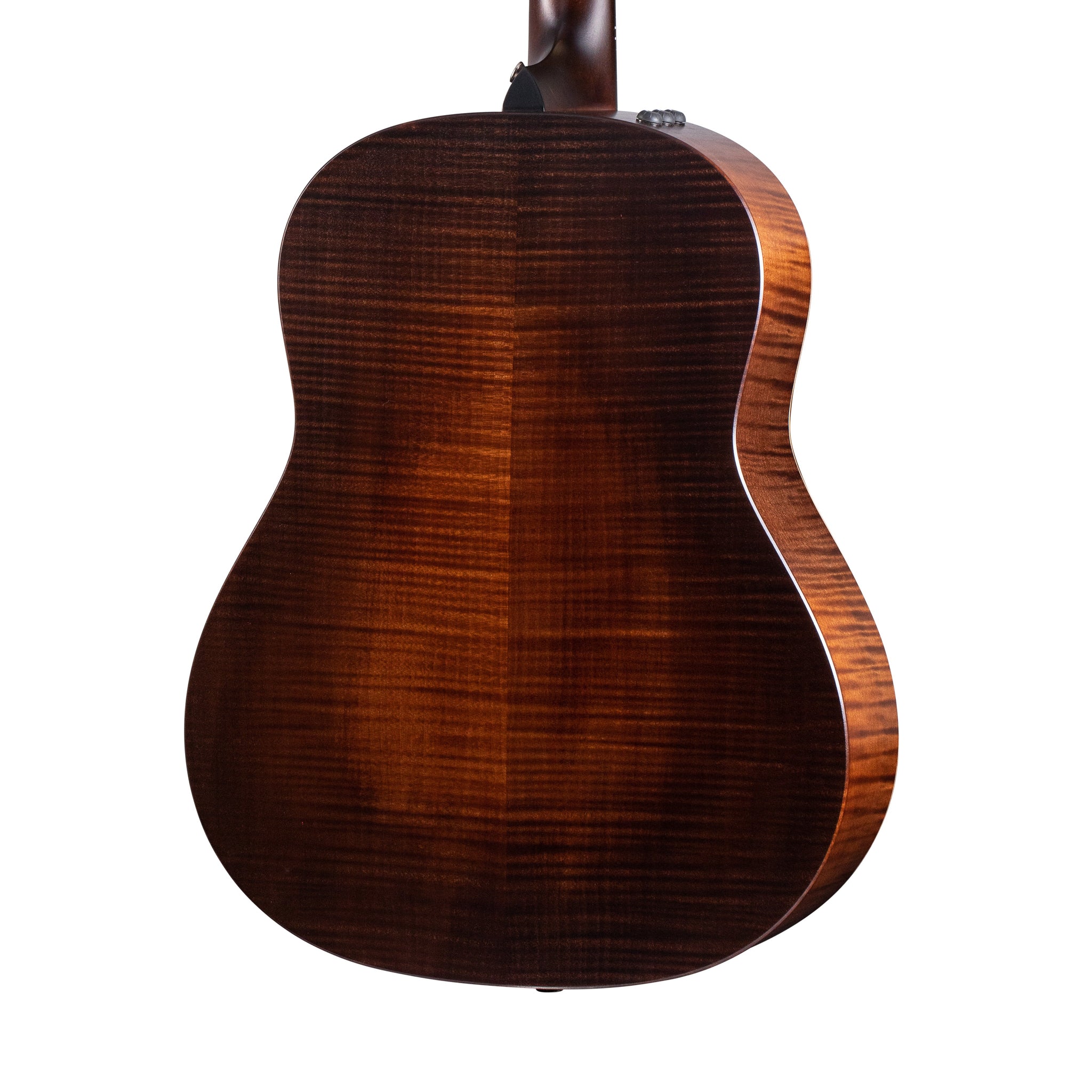 Just as the Grand Pacific body shape introduced a new kind of seasoned tone to the Taylor line, the AD27e Flametop brings a new sonic flavour with an earthy, broken-in character. This dreadnought-style guitar boasts a back, sides and top of solid Big Leaf maple, with Taylor's V-Class bracing under the hood. Combined with nickel bronze strings from D'Addario, the maple construction results in an appealingly rustic sound that's totally distinct from the pristine, vibrant quality that many players associate with Taylor. Visually, the AD27e Flametop offers a rootsy, workmanlike vibe that fits right in with its siblings in the American Dream Series, with maple's beautiful figure complemented by a dusky Woodsmoke finish and a satin sheen. It's available with ES2 electronics and ships in a lightweight, super-sturdy AeroCase.