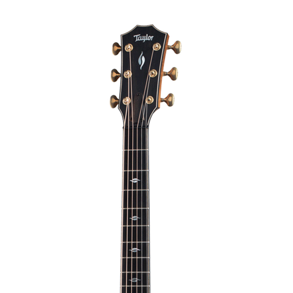 But this Builder’s Edition model truly shines in the details, starting with its most significant innovation: the sound port cutaway. Crafted to resemble a partial Florentine cutaway, the design keeps the guitar’s full back intact while still allowing easy access to the high-register frets. The additional soundhole adds a truly new dimension of acoustic sound, creating a wide-angle sound that would fit as well in a classical orchestra as it would a rock band or a fingerstyle solo act. For aesthetics, Taylor appointed this model with a host of their most player-centric features, including figured maple binding with chamfered edges and rosewood edge trim, a single-ring rosette in green abalone, Windansea inlays in shell and mother-of-pearl, and ultra-precise Gotoh 510 tuners in antique gold. The guitar ships with ES2 electronics in a deluxe Taylor hardshell case.