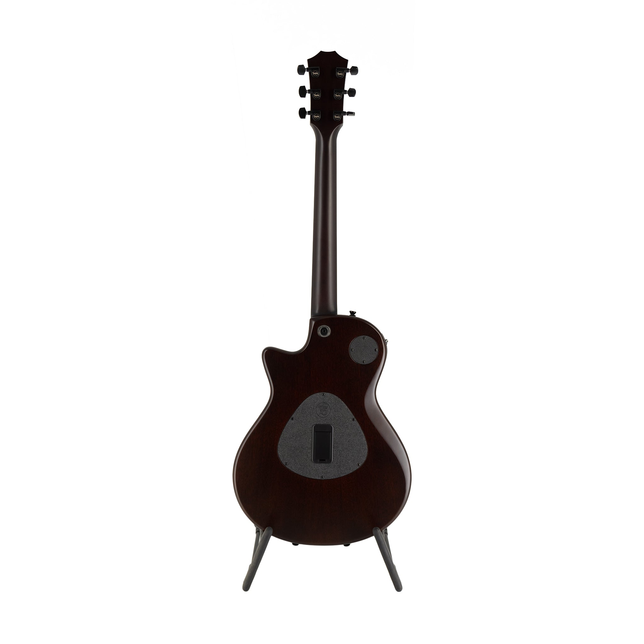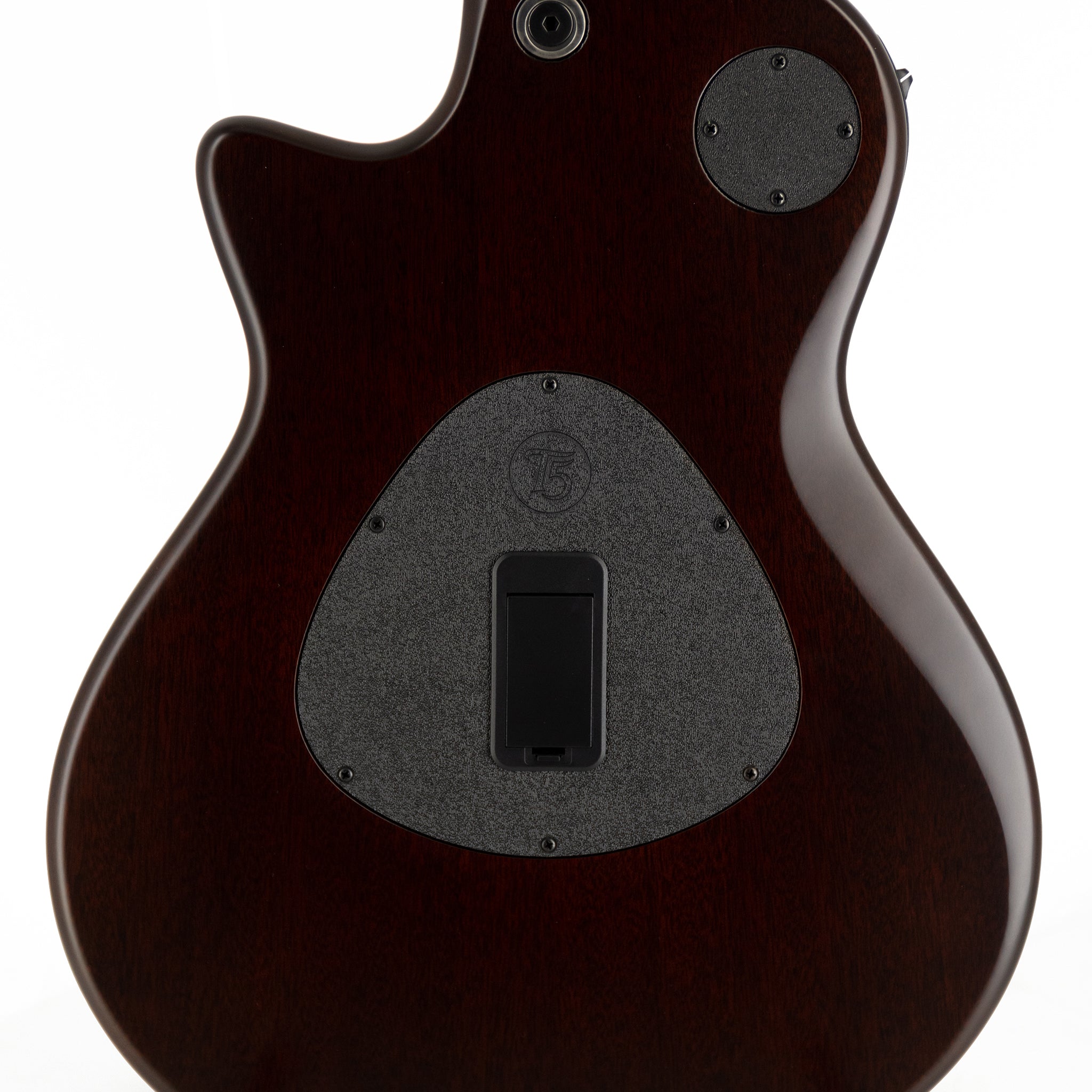 This addition to the T5z Classic family highlights a visually stunning top wood that brings a new level of aesthetic beauty to our hybrid hollowbody guitars. Blackheart sassafras lends a striking, naturally variegated look atop this T5z model, with striping and grain accentuated by a dark edge burst finish treatment that covers the entire body. Musically, this guitar boasts a three-pickup configuration consisting of two humbuckers and an acoustic body sensor, with a five-way switch that allows you to shape your tone across both the acoustic and electric end of the spectrum. Appointments for this model aim to showcase the natural traits of blackheart sassafras, with an unbound body and a pair of F-holes accentuated by Small Diamond fretboard inlays in Italian acrylic, satin black tuners and a satin finish. It ships with a Taylor deluxe hardshell case.