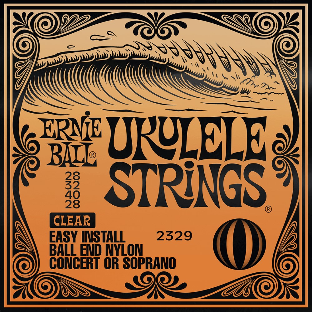 Ernie Ball Ukulele strings are made from 100% nylon monofilament. Ukulele strings are offered in traditional clear resin for a bright, balanced tone with excellent projection and black resin for a warm, rich tone with percussive attack. Ernie Ball Ukulele strings feature ball end construction for easy installation and enhanced tuning stability. Gauges .028, .032, .040, .028