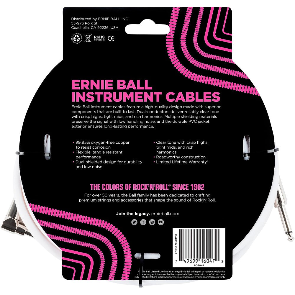 Ernie Ball P06047 Straight to Right Angle Instrument Cable, White, 20ft
