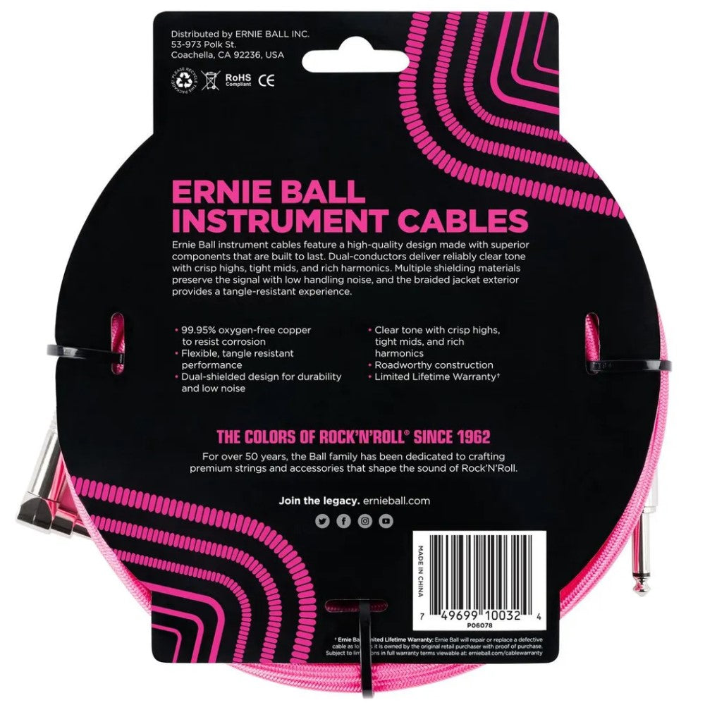 Ernie Ball instrument cables feature a high-quality design made with superior components that are built to last. Dual-conductors deliver reliably clear tone with crisp highs, tight mids, and rich harmonics. Multiple shielding materials preserve the signal with low handling noise, and the braided jacket exterior provides a tangle-resistant experience. Cable length 10ft (3.05m).