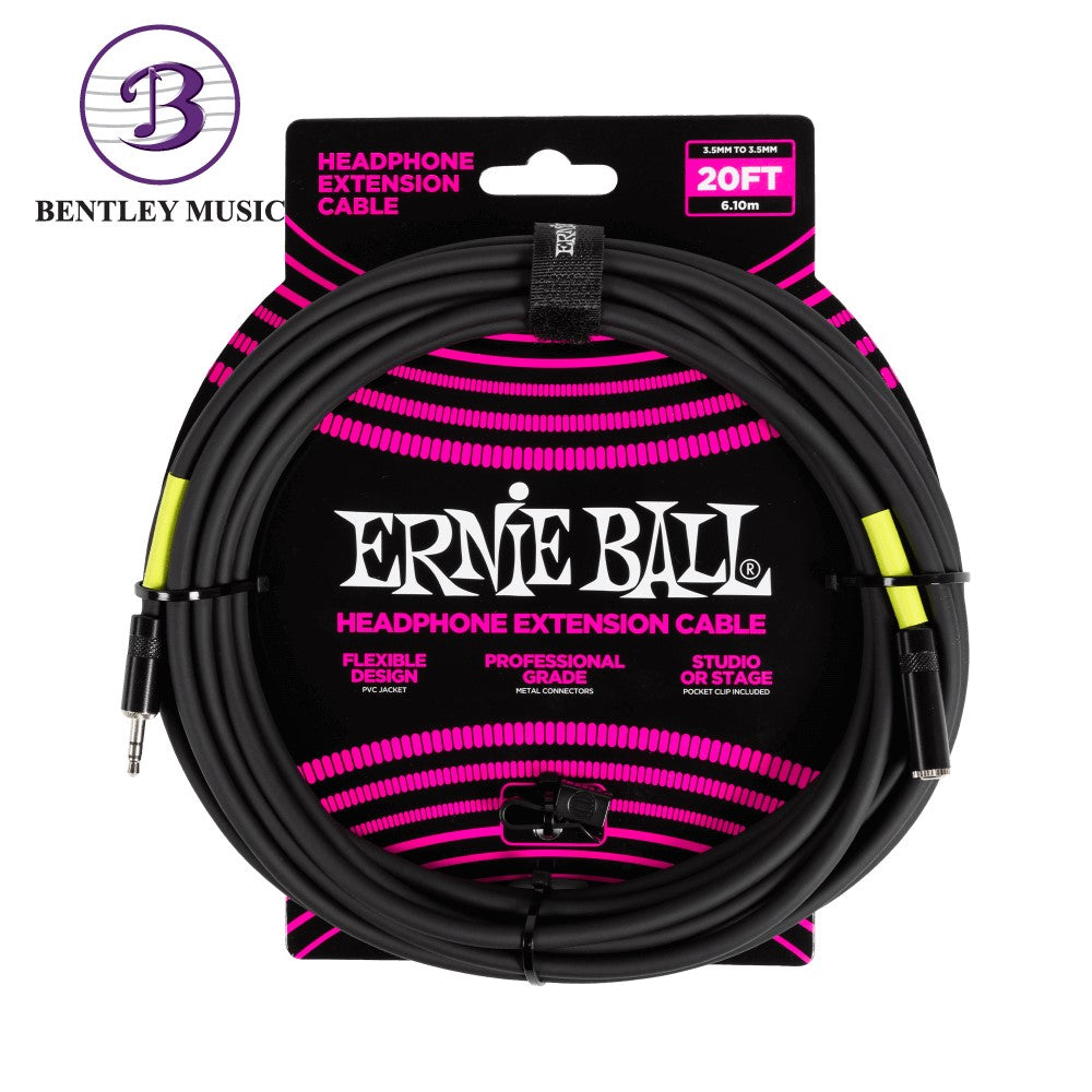 Ernie Ball P06425 Headphone Extension Cable 3.5mm to 3.5mm 20 Ft, Black