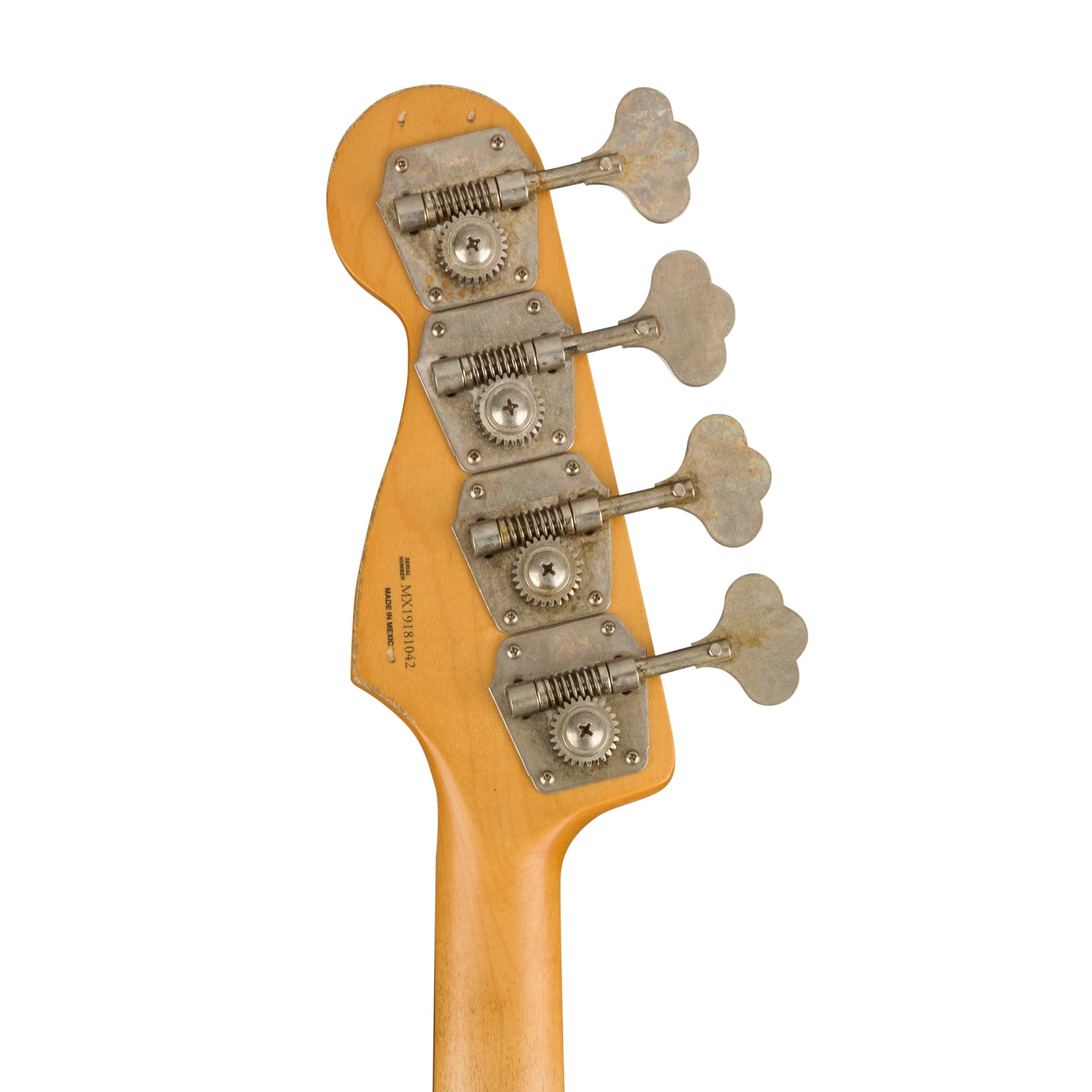 The single-coil Jazz Bass pickups deliver authentic, original-era tone. The “Mid ‘60s C”-shaped neck has a 9.5”-radius fingerboard with 20 Medium Jumbo frets for comfortable playing feel. A vintage-style, 4-saddle bridge with threaded saddles and reverse, open-gear tuning machines provide classic aesthetics, rock-solid performance and tuning stability. Other features include 34” scale length, chrome hardware and 4-bolt neck plate. Includes a hardshell case.