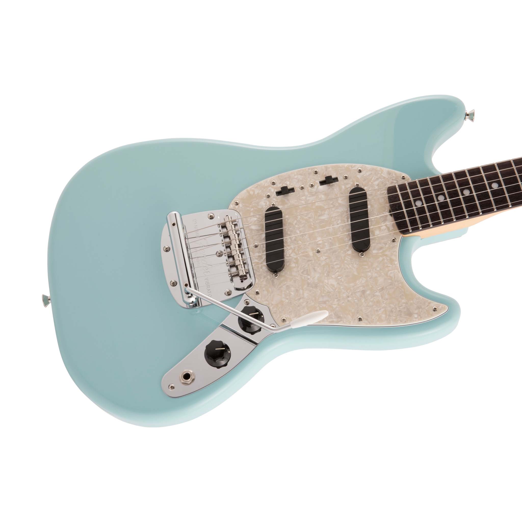 Made in Japan Traditional 60s Mustang® has a gloss finish basswood body. A 9.5-inch radius "U" shaped maple neck with 22 vintage-style frets provides a classic performance that is unique to the Traditional series. Floating bridges with dynamic vibrato tailpieces, and original pickups selected for the Traditional series produce realistic, musical vintage tones. Solid guitar craftsmanship and flexible answers to player needs are reflected in this series.