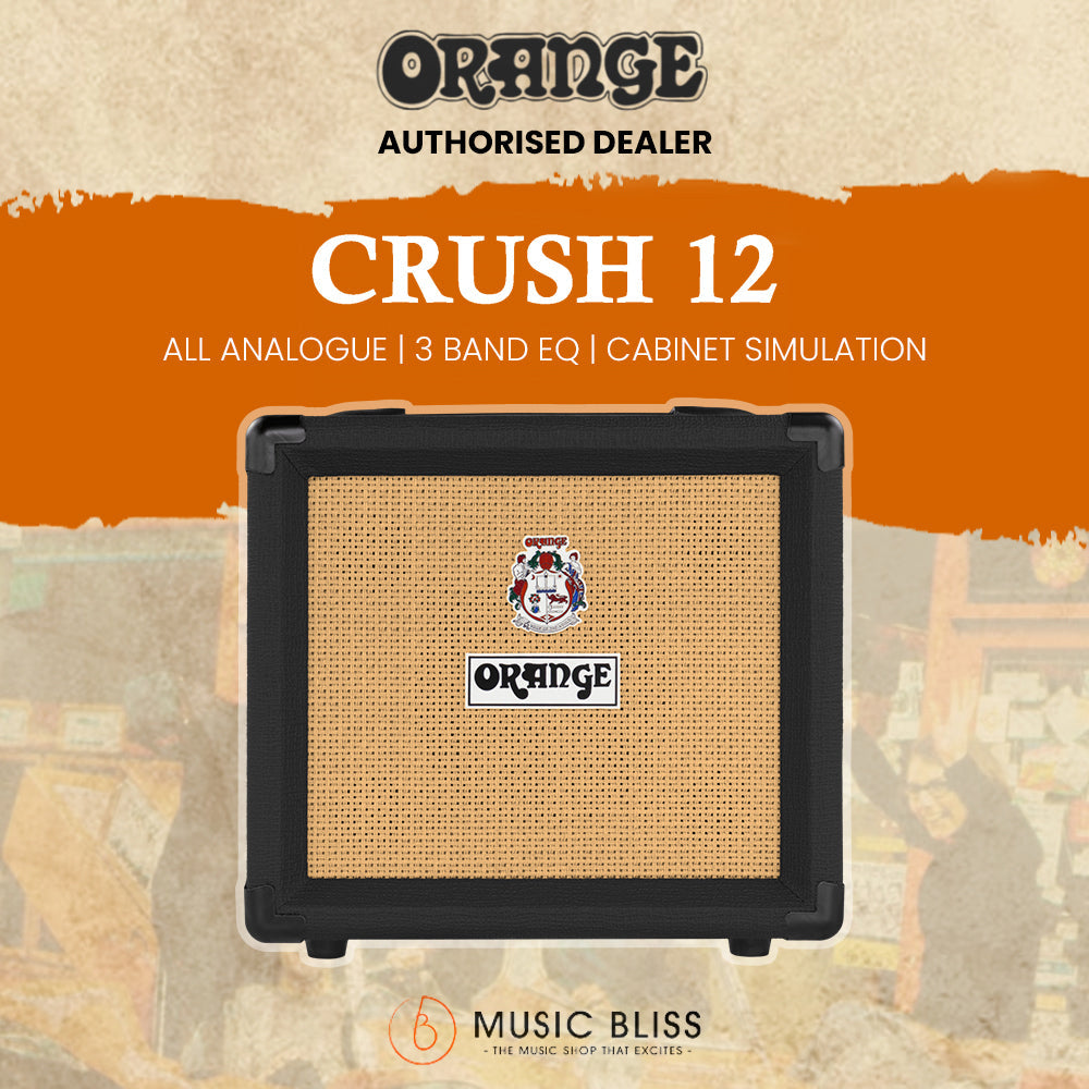 The Orange Crush 12 guitar combo amplifier raises the bar for practice amps, giving you gut-punching tones with highly-responsive overdrive and levels of detailed saturation that will absolutely blow your mind. Capturing the dirty channel of the Rockerverb in solid state form, the Crush 12 provides you with enormous, wide-ranging tones that will take you back to the heady days of no-nonsense, old school analog guitar amplifiers. On top of that, you get Orange's innovative CabSim circuit that faithfully emulates the muscle of an Orange 4 x 12" cabinet through the Crush 12's headphone/line output. The guitarists here at Music Bliss are huge fans of Orange guitar amplifiers, and we're really stoked about the Crush 12 combo!