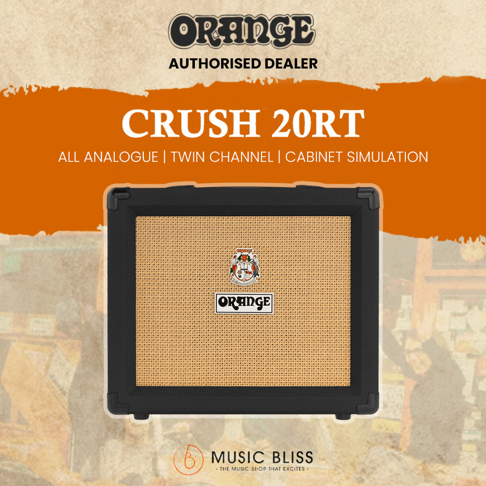 The Orange Crush 20RT brings you gut-punching tones with highly-responsive overdrive and levels of detailed saturation that will absolutely blow your mind. Featuring two footswitchable channels, the Crush 20RT's 4-stage preamp provides you with enormous, wide-ranging tones that will take you back to the heady days of no-nonsense, old school analog guitar amplifiers. On top of that, you get Orange's innovative CabSim circuit that faithfully emulates the muscle of an Orange 4 x 12" cabinet through the Crush 20RT's headphone/line output, as well as an onboard tuner and reverb. The guitarists here at Music Bliss are huge fans of Orange guitar amplifiers, and we're really stoked about the value-priced Crush 20RT combo!