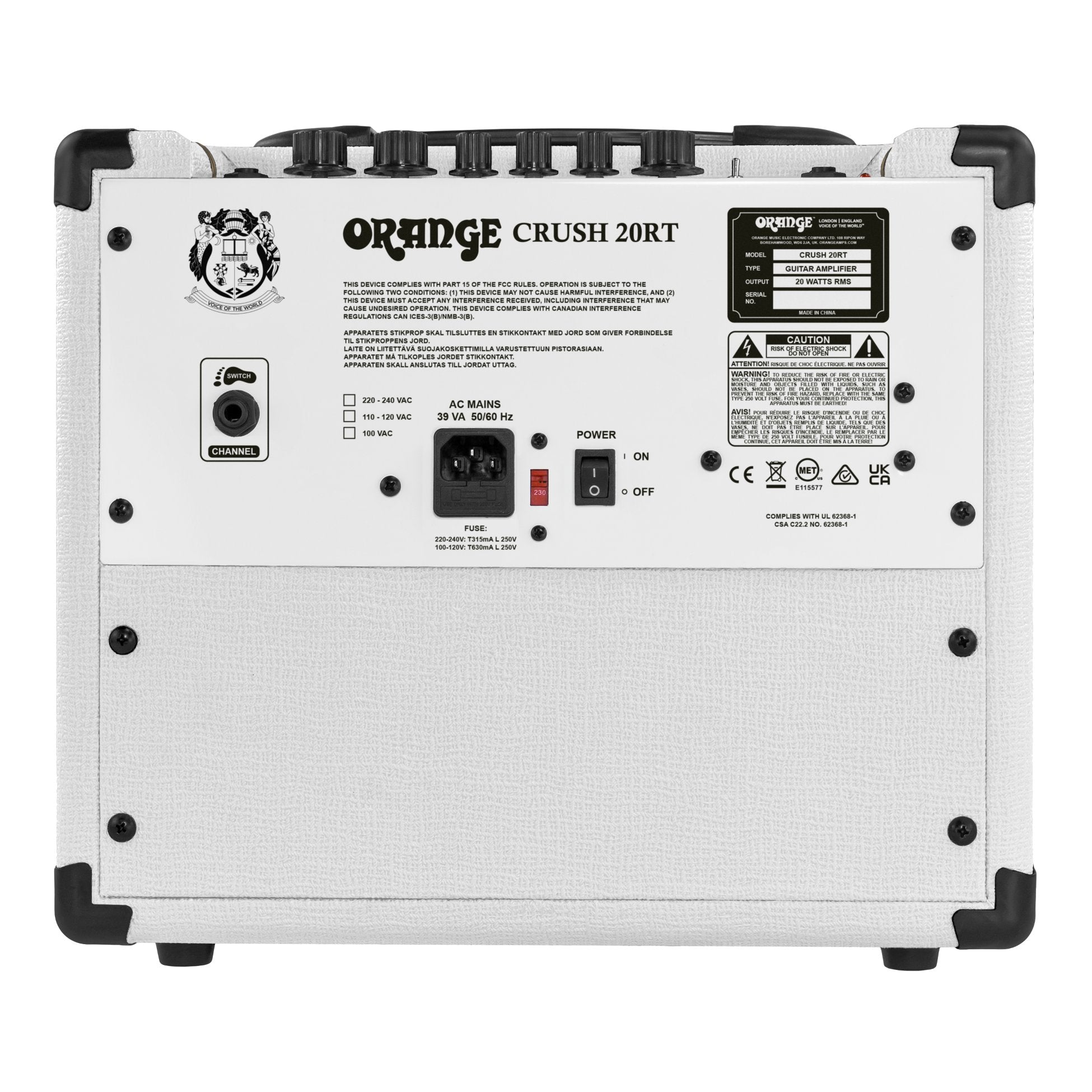 The Orange Crush 20RT Limited Edition sports a custom cosmetic makeover courtesy of Australian 6-string phenom Orianthi, along with all the time-tested features of Orange’s beloved Crush series. This all-analog 1 x 8-inch combo amplifier boasts 20 watts of power and a versatile 2-channel design (Clean/Dirty) that provides you with everything from squeaky clean tones to ripping gain-laden firepower. Plus, you get a powerful 3-band EQ and a spring-style reverb to shape your sound to perfection. It’s just about the ideal practice amp to keep your chops razor sharp, with a built-in tuner and CabSim emulation on the headphone out to inspire hours of inspiring woodshedding sessions. Packing a rich range of classic Orange tones, the limited-edition Orianthi Orange Crush 20RT is rounded out with eye-catching aesthetic requests from Orianthi, including a white Tolex exterior, all-black accents, and a custom Orianthi badge.