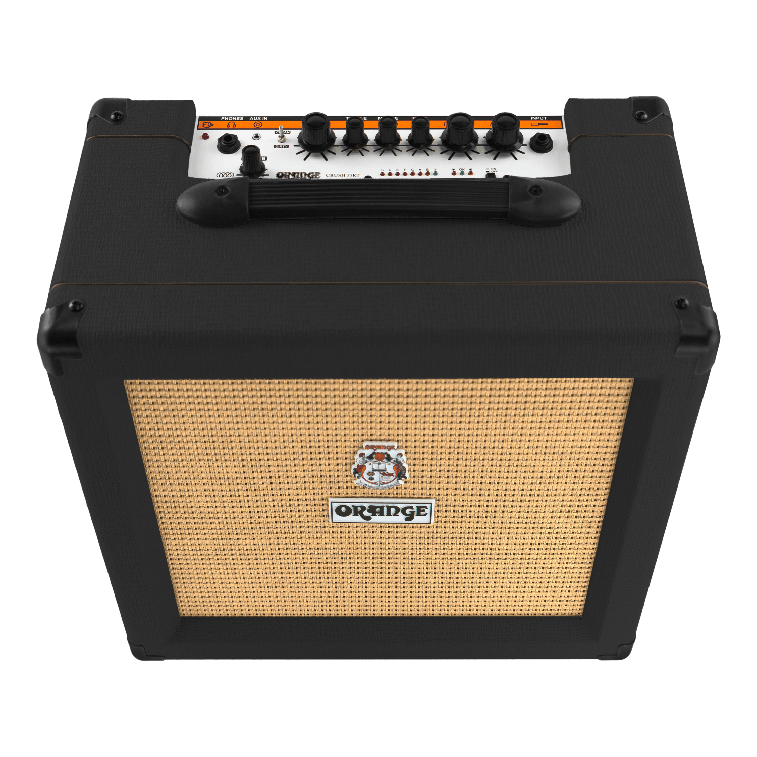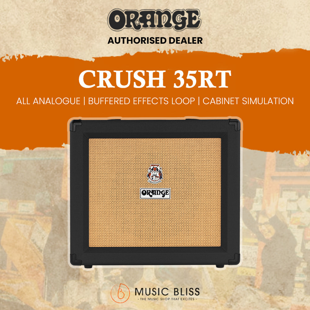 The fully-loaded Orange Crush 35RT brings you gut-punching tones with highly responsive overdrive and mind-blowing levels of detailed saturation. Featuring two foot switchable channels, the Crush 35RT's 4-stage pre amp provides you with enormous, wide-ranging tones that will take you back to the heady days of no-nonsense, old school analog guitar amplifiers. You also get Orange's innovative CabSim circuit that faithfully emulates the muscle of an Orange 4 x 12" cabinet through the Crush 35RT's headphone/line output, as well as an on board tuner and reverb. All that and a fully buffered low-impedance effects loop! The guitarists here at Music Bliss are huge fans of Orange guitar amplifiers, and we're really stoked about the value-priced Crush 35RT combo!