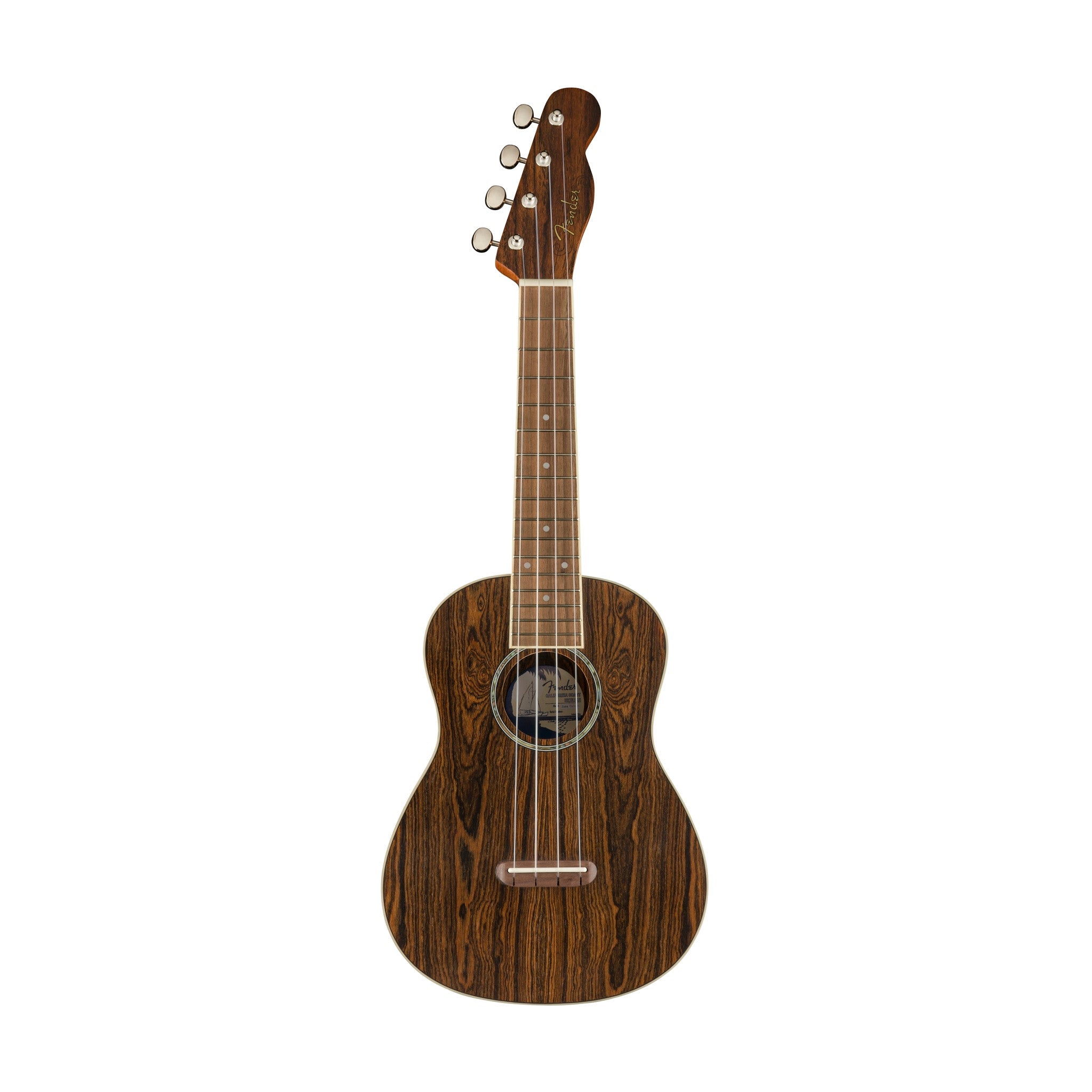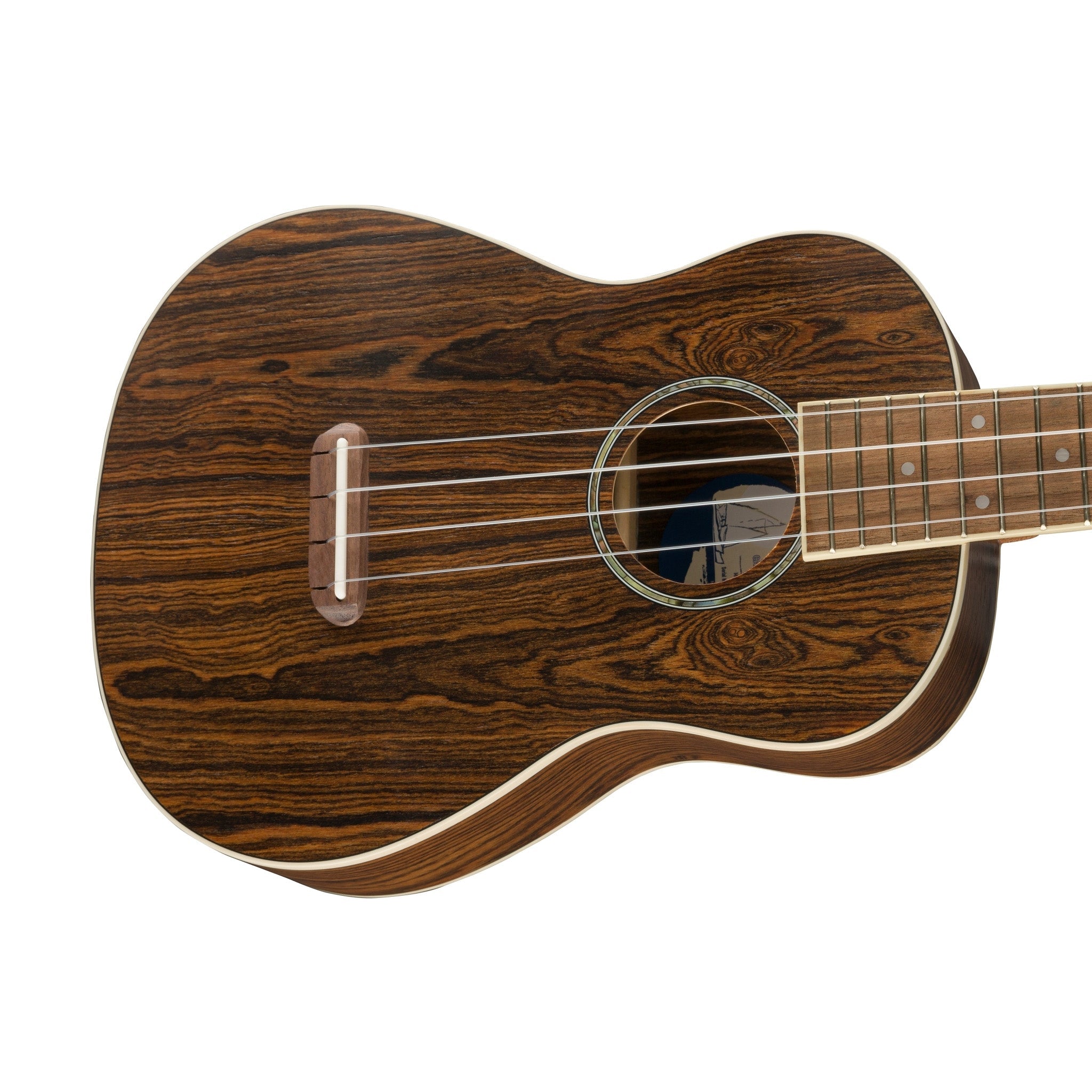 Like the famous Southern California beach it’s named for, the Zuma Exotic Concert Ukulele inspires creativity. Built with Bocote wood, the Zuma Exotic has a striking and elegant appearance with a warm, balanced tone to match. A nato neck, walnut fingerboard, abalone rosette, and an open-pore satin finish complement the instrument’s earthy look and feel. The convenient no-tie bridge allows for easy string changes, making the Zuma the perfect go-to for leisure and studio play.