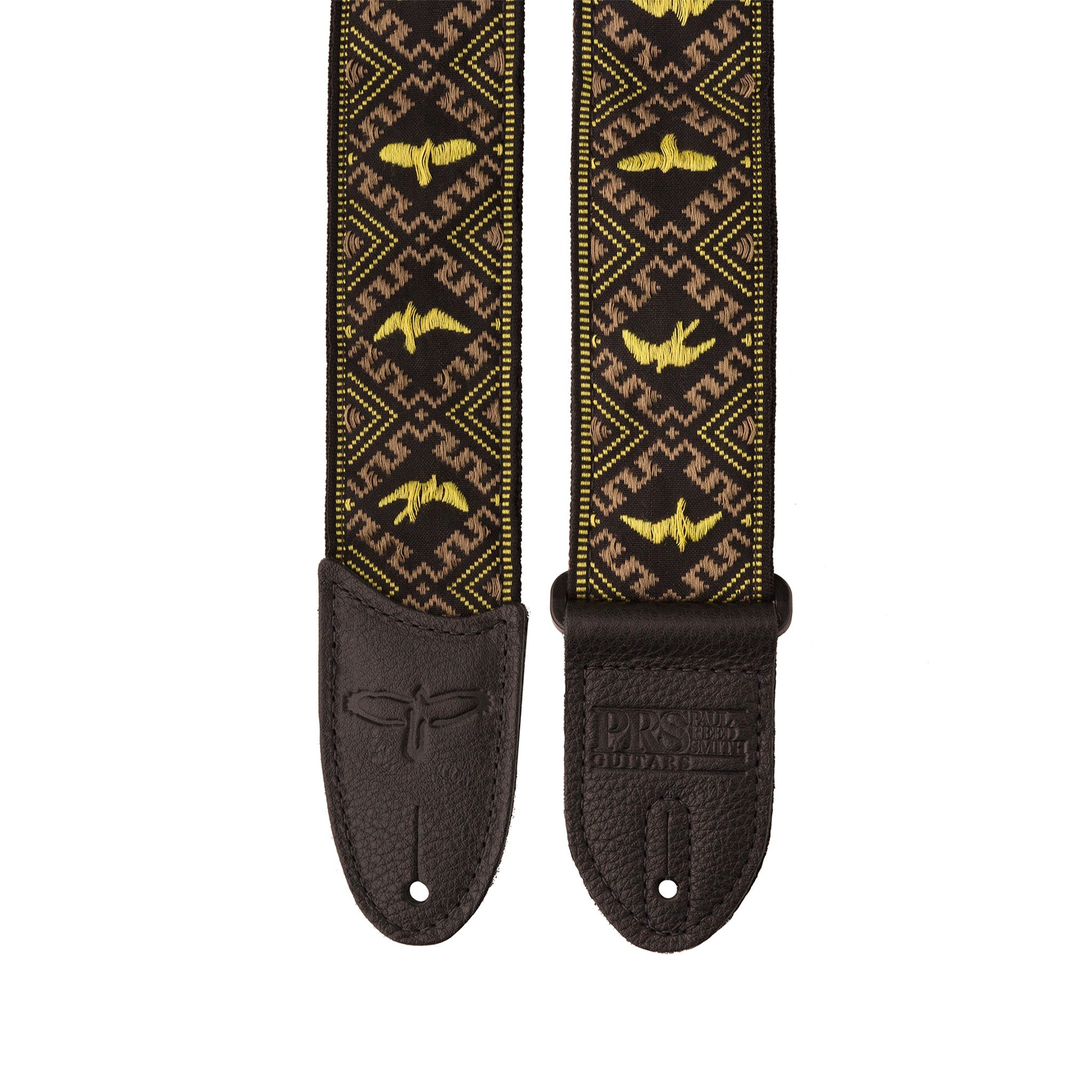 Check out PRS' new take on an old classic! Unique & artistically styled hootenanny jacquard guitar strap weaved with PRS birds made popular from PRS fretboard pattern.